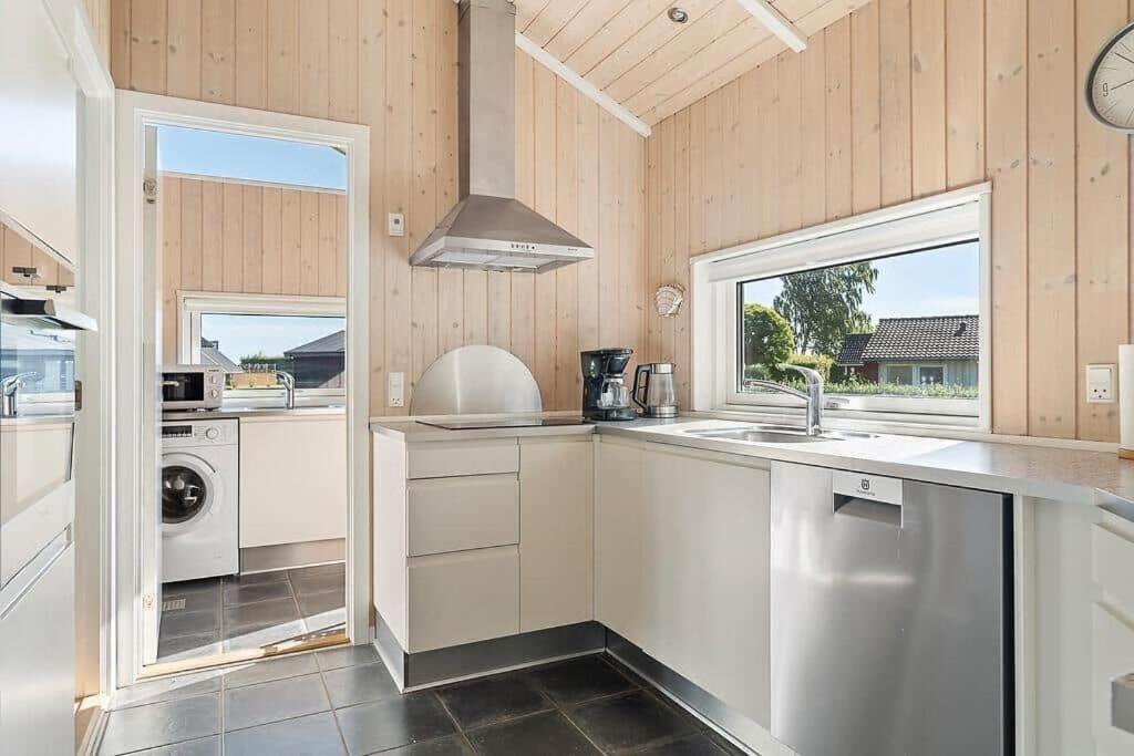 Holiday Home. This holiday home boasts a hot tub and a sauna. The holiday home features 3 bedrooms, 2 bathrooms with a shower and a kitchenette. Guests will find a stovetop, a refrigerator, a dishwasher and a microwave in the well-equipped kitchenette. The holiday home also provides guests with a barbecue. This holiday home has a washing machine, a tea and coffee maker, a TV and outdoor furniture. The unit offers 3 beds.
