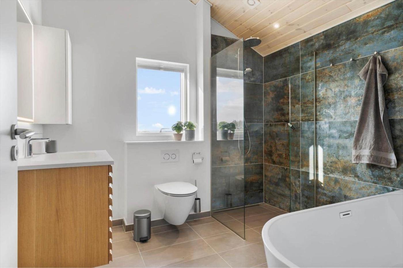 The spacious holiday home features 3 bedrooms, a TV, a fully equipped kitchenette with a dishwasher and an oven, a washing machine, and 2 bathrooms with a bath.