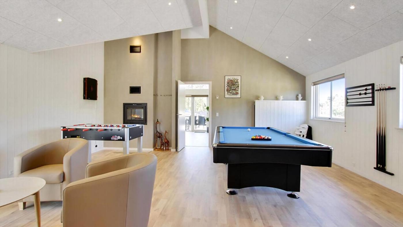 Six-Bedroom Holiday Home. This luxurious holiday home offers a private pool, a sauna and a fireplace. Guests will find a stovetop, an oven and a microwave in the kitchen. The holiday home also comes with a barbecue. The spacious holiday home features a washing machine, a tea and coffee maker, as well as a private bathroom boasting a bath and a shower. The unit has 10 beds.