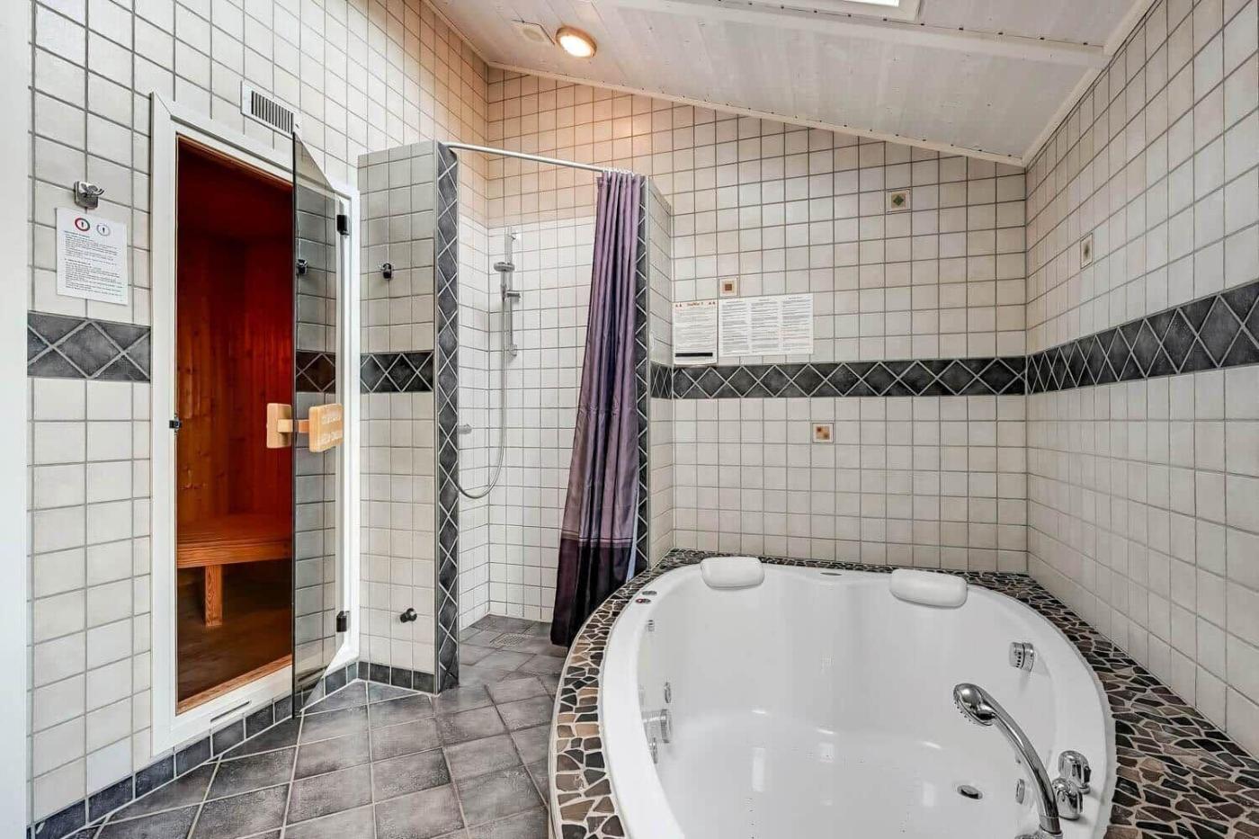 Holiday Home. The hot tub and sauna are the standout features of this holiday home. Boasting 3 bedrooms and 2 bathrooms with a shower, this spacious holiday home has a well-fitted kitchen and a terrace. The well-equipped kitchen has a stovetop, a refrigerator, a dishwasher and an oven. This holiday home features a tea and coffee maker, a TV and outdoor furniture. The unit offers 4 beds.