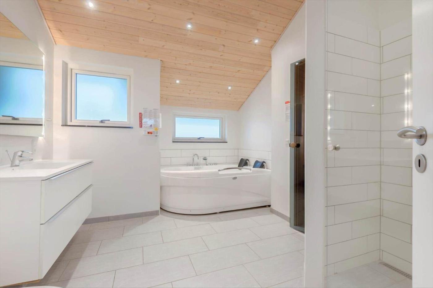 Holiday Home. This holiday home features a hot tub and a sauna. This spacious holiday home comes with 4 bedrooms, kitchen, a terrace and 2 bathrooms with a shower. Guests will find a stovetop, a refrigerator, a dishwasher and an oven in the well-fitted kitchen. The holiday home also includes a barbecue. The holiday home features a TV, a washing machine, a tea and coffee maker, tumble dryer as well as sea views. The unit has 4 beds.