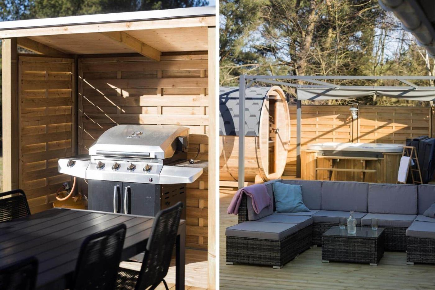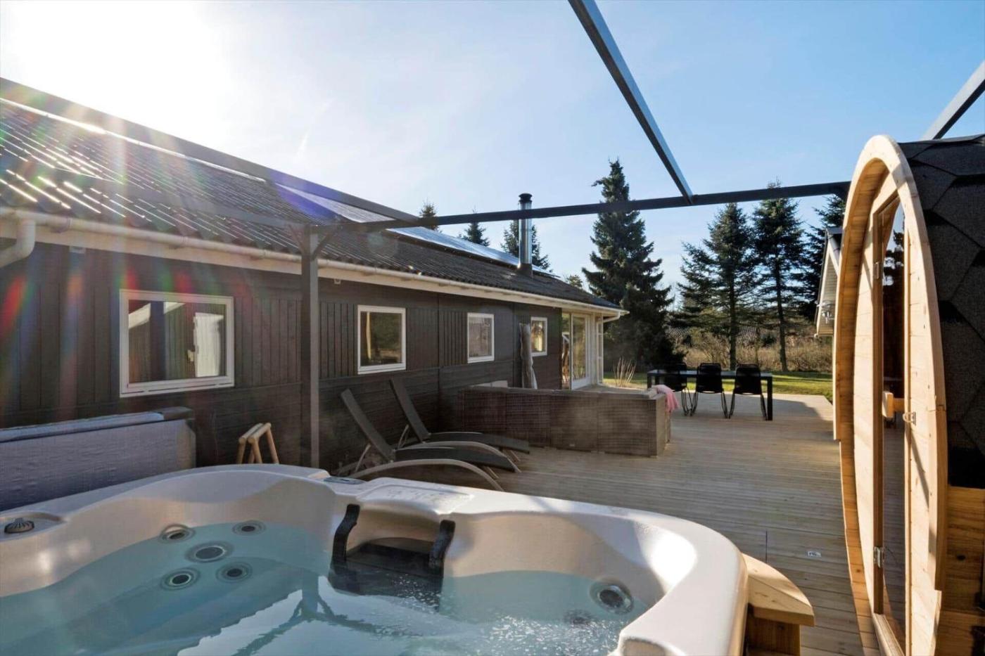 Holiday Home. The hot tub and sauna are the special features of this holiday home. This holiday home comes with 3 bedrooms, kitchenette, a terrace and 2 bathrooms with a shower. Guests will find a stovetop, a refrigerator, a dishwasher and an oven in the well-fitted kitchenette. The holiday home also includes a barbecue. Boasting outdoor furniture, this holiday home also features a washing machine, a tea and coffee maker and a TV. The unit has 6 beds.