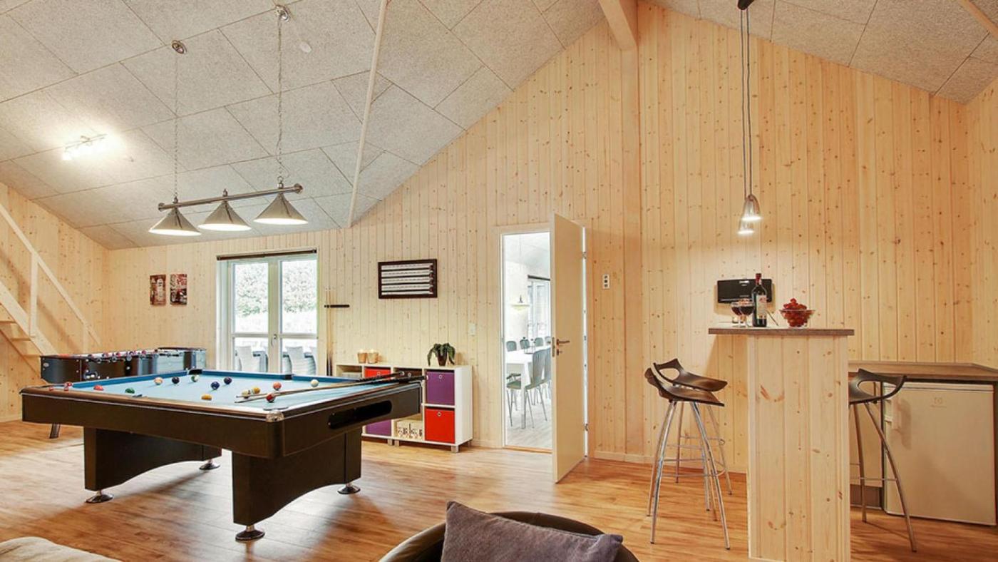 Nine-Bedroom Holiday Home. This luxurious holiday home provides a private pool, a sauna and a fireplace. The spacious holiday home features a washing machine, a tea and coffee maker, as well as a private bathroom boasting a bath and a shower. Guests will find a stovetop, an oven and a microwave in the kitchen. The holiday home also comes with a barbecue. A seating area with a TV, a dining area and a terrace are available in this holiday home. The unit has 15 beds.