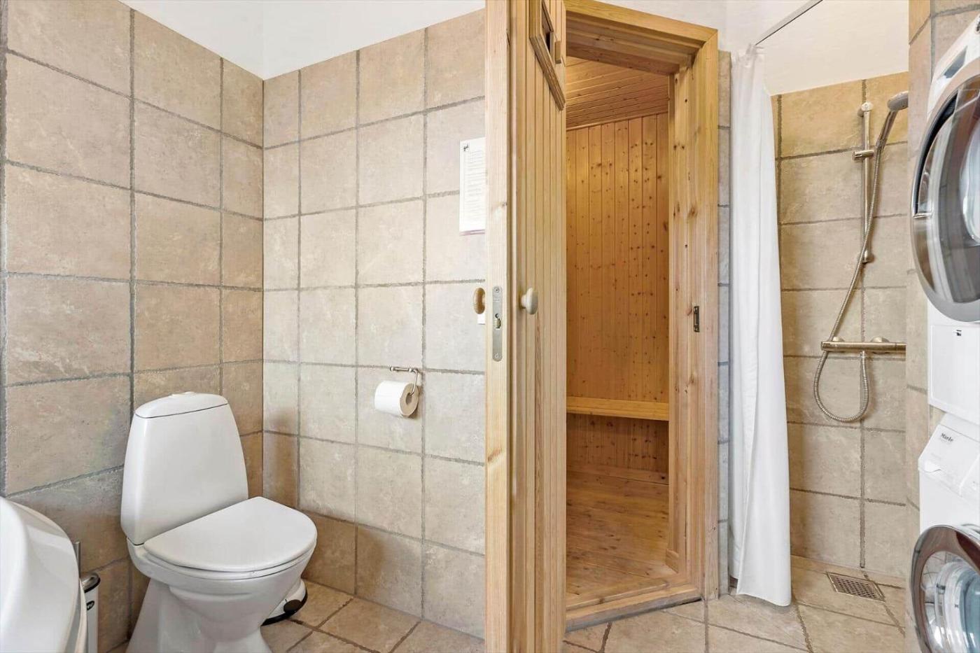 Holiday Home. The hot tub and sauna are the special features of this holiday home. Featuring 3 bedrooms and 1 bathroom with a shower, this holiday home offers a well-fitted kitchenette and a terrace. Guests will find a stovetop, a refrigerator, a dishwasher and an oven in the well-equipped kitchenette. The holiday home also provides guests with a barbecue. The holiday home provides a TV, a washing machine, a tea and coffee maker, tumble dryer as well as sea views. The unit has 4 beds.