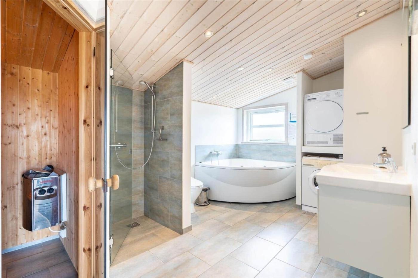 Holiday Home. Guests will have a special experience as this holiday home provides a hot tub and a sauna. Featuring 3 bedrooms and 2 bathrooms with a shower, this spacious holiday home offers a well-fitted kitchen and a terrace. Guests will find a stovetop, a refrigerator, a dishwasher and an oven in the well-fitted kitchen. The holiday home also offers a barbecue. This holiday home features a washing machine, a tea and coffee maker, a TV and outdoor furniture. The unit has 7 beds.