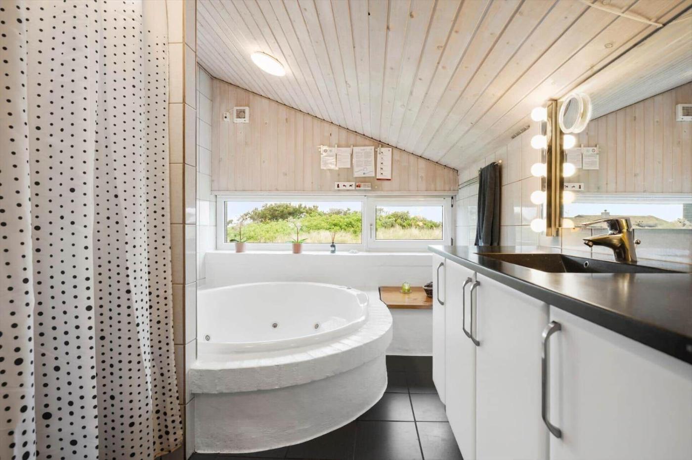 Holiday Home. This holiday homes special features are the hot tub and the sauna. This spacious holiday home comprises 4 bedrooms, kitchenette, a terrace and 2 bathrooms with a shower. Guests will find a stovetop, a refrigerator, a dishwasher and an oven in the kitchenette. The holiday home also provides guests with a barbecue. The holiday home provides a washing machine, a tea and coffee maker, tumble dryer, a TV, as well as sea views. The unit offers 4 beds.