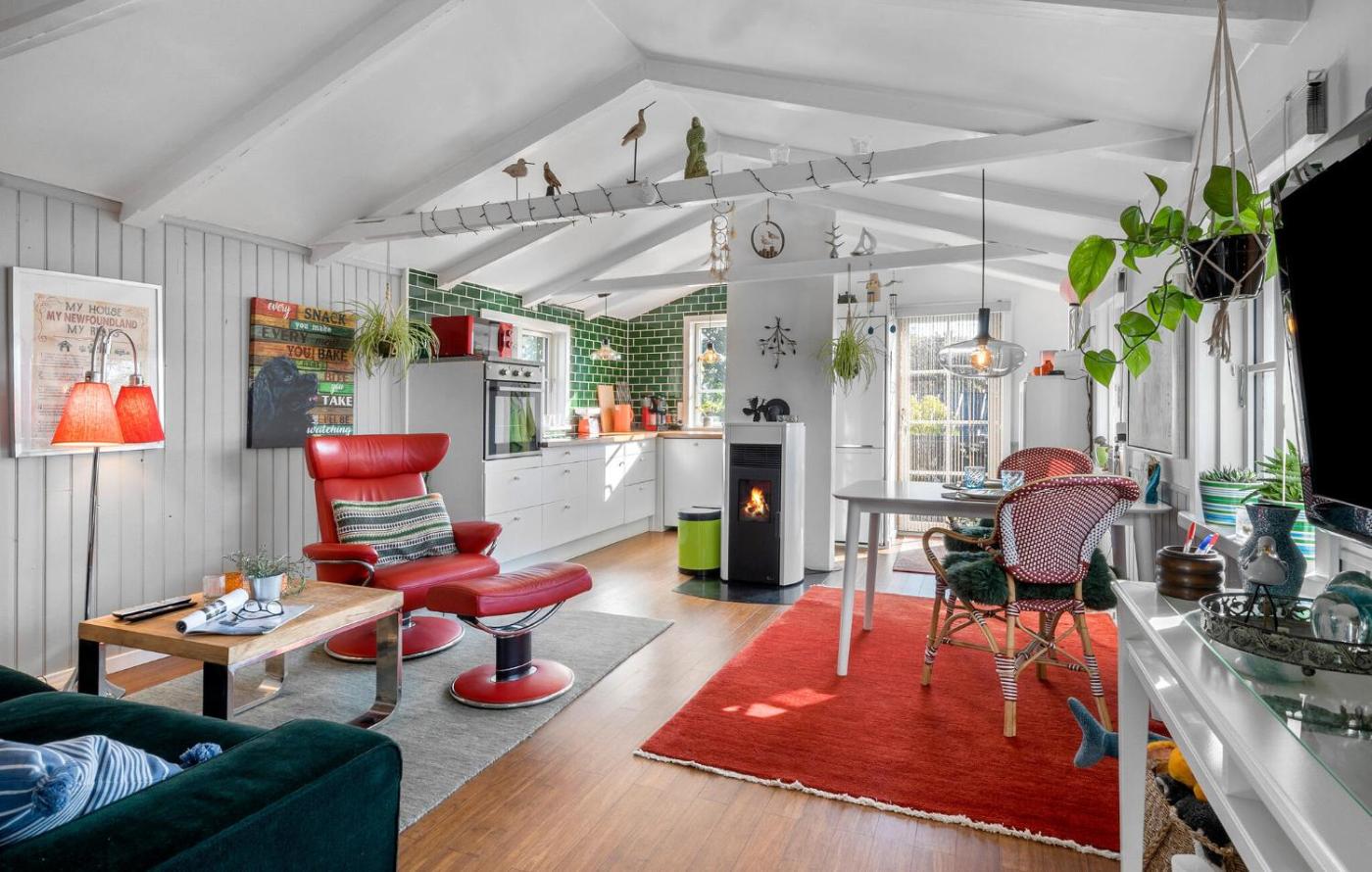 One-Bedroom Holiday Home. Boasting a private entrance, this holiday home comes with 2 living rooms, 1 separate bedroom and 1 bathroom with a shower. Guests will find a stovetop, a refrigerator, a dishwasher and kitchenware in the well-equipped kitchen. The holiday home also includes a barbecue. The holiday home features a TV with cable channels, a washing machine, a tea and coffee maker, a dining area as well as sea views. The unit has 1 bed.