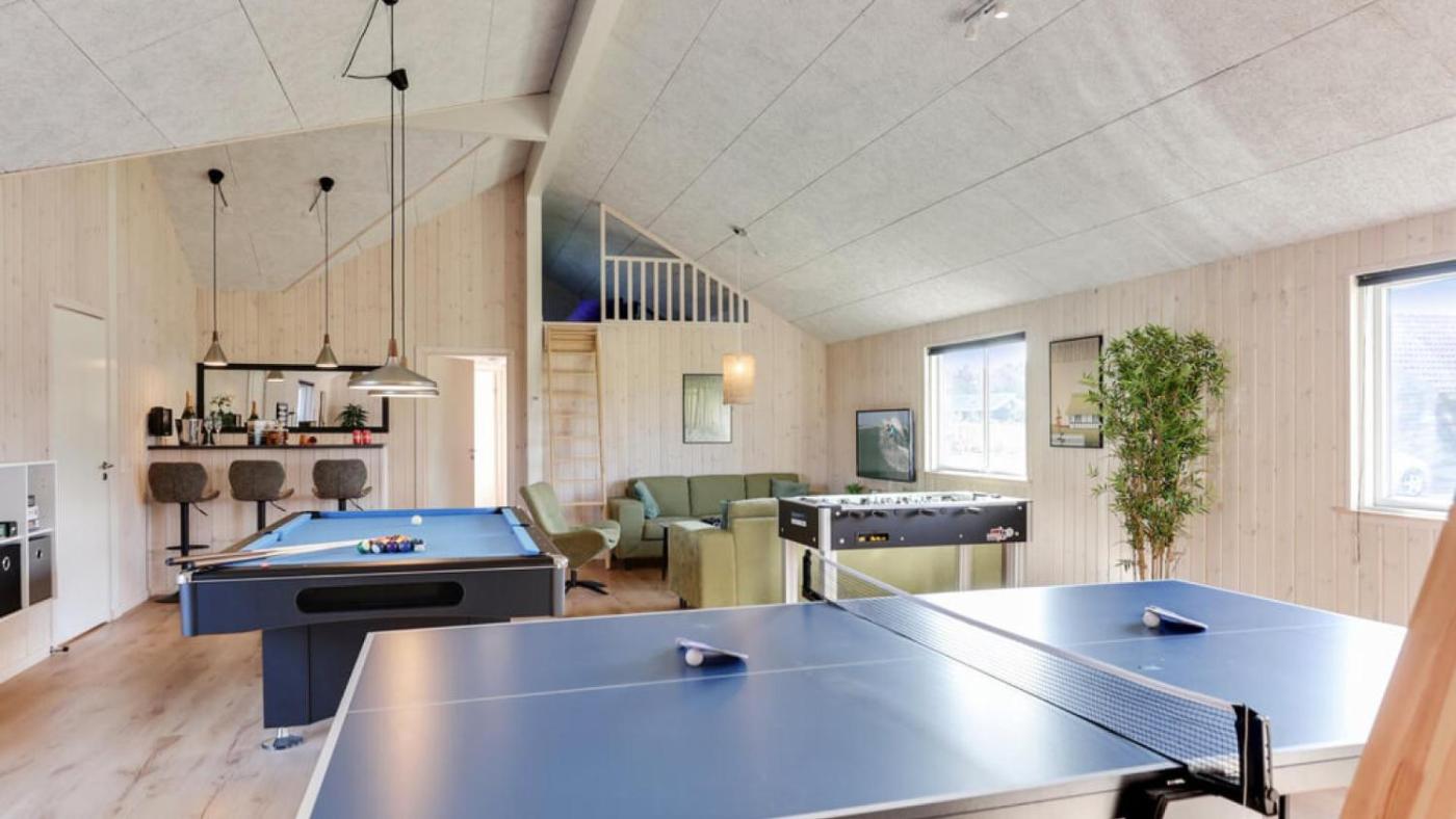 Nine-Bedroom Holiday Home. This luxurious holiday home has a private pool, a sauna and a fireplace. Guests will find a stovetop, an oven and a microwave in the kitchen. The holiday home also comes with a barbecue. The spacious holiday home features a washing machine, a tea and coffee maker, as well as a private bathroom boasting a bath and a shower. The unit has 15 beds.