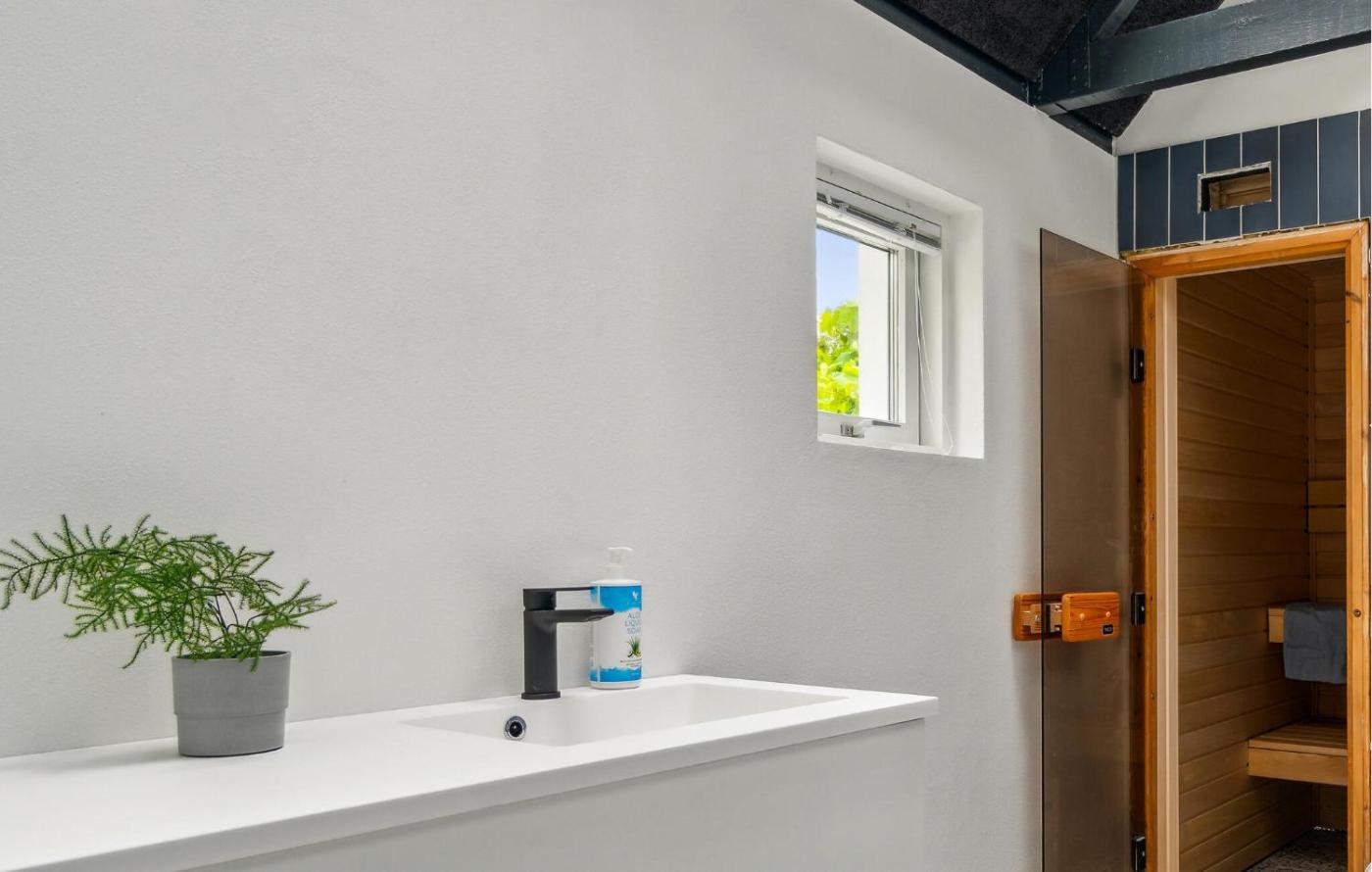 Four-Bedroom Holiday Home. This holiday home features a private pool and a sauna. Boasting a private entrance, this air-conditioned holiday home includes 1 living room, 5 separate bedrooms and 2 bathrooms with a bath and a shower. Guests will find a refrigerator, a dishwasher, kitchenware and an oven in the well-equipped kitchen. The holiday home also features a barbecue. The spacious holiday home offers a TV, a washing machine, a tea and coffee maker, a dining area as well as sea views. The unit has 4 beds and 2 futons.