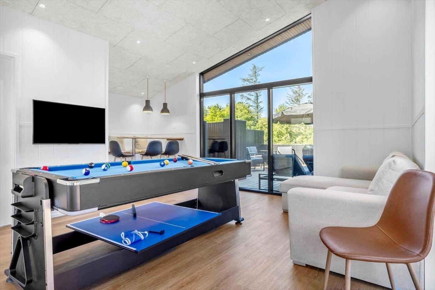 Holiday Home. Guests will have a special experience as this holiday home offers a hot tub. Featuring 6 bedrooms and 3 bathrooms with a shower, this spacious holiday home offers a well-fitted kitchenette and a terrace. Guests will find a refrigerator, a dishwasher, an oven and a microwave in the well-fitted kitchenette. The holiday home also has a barbecue. This holiday home features a washing machine, a tea and coffee maker, a TV and outdoor furniture. The unit has 6 beds.