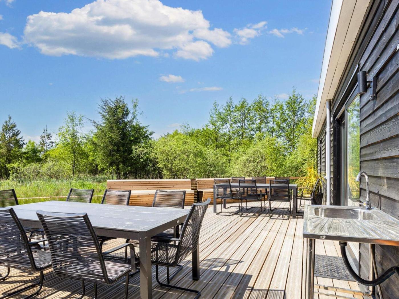 Six-Bedroom Holiday Home. This holiday homes standout feature is the hot tub. This spacious holiday home is comprised of 1 living room, 6 separate bedrooms and 2 bathrooms with a shower. In the well-equipped kitchen, guests will find a stovetop, a refrigerator, a dishwasher and an oven. Featuring a terrace, this holiday home also offers a washing machine, a tea and coffee maker and a TV with streaming services. The unit offers 12 beds.