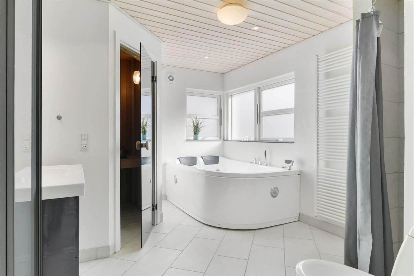 Holiday Home. The hot tub and sauna are the special features of this holiday home. This holiday home comprises 3 bedrooms, kitchenette, a terrace and 1 bathroom with a shower. Guests will find a stovetop, a refrigerator, a dishwasher and an oven in the kitchenette. The holiday home also provides guests with a barbecue. Featuring outdoor furniture, this holiday home also provides a washing machine, a tea and coffee maker and a TV. The unit offers 4 beds.